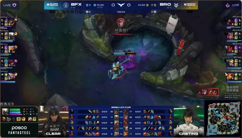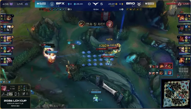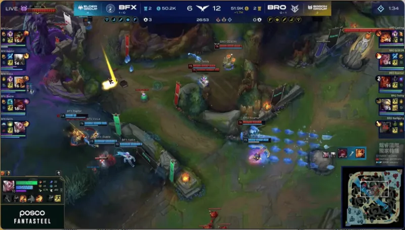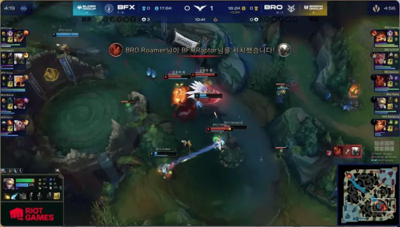 15分钟,BRO在河道附近被打出1换2,经济差距缩小了一些
