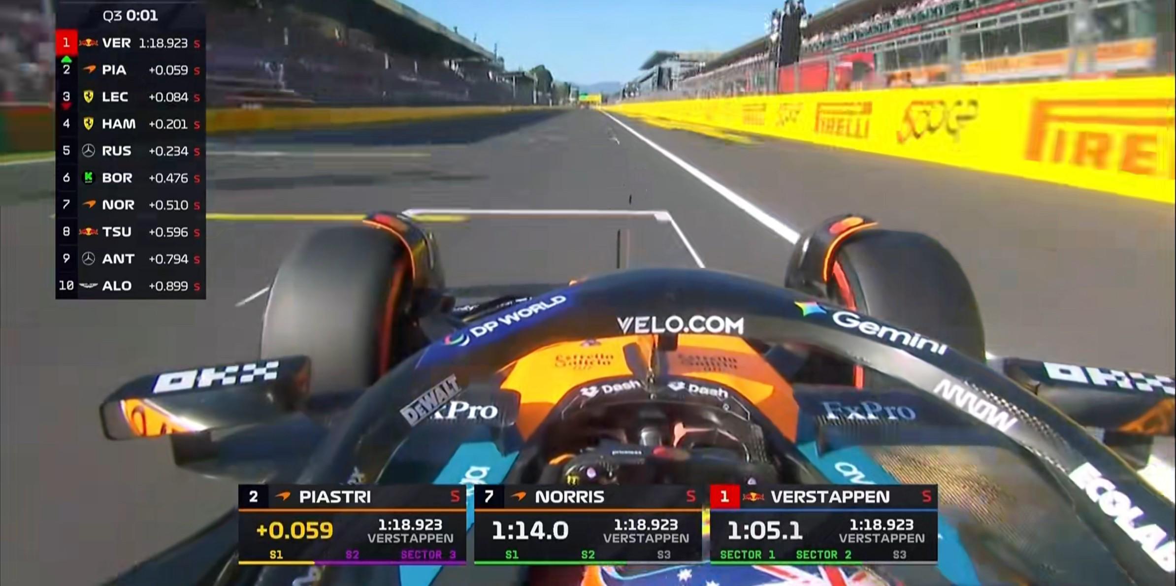 维斯塔潘立刻刷掉诺里斯的最快圈,第三段刷紫来到榜首!!!