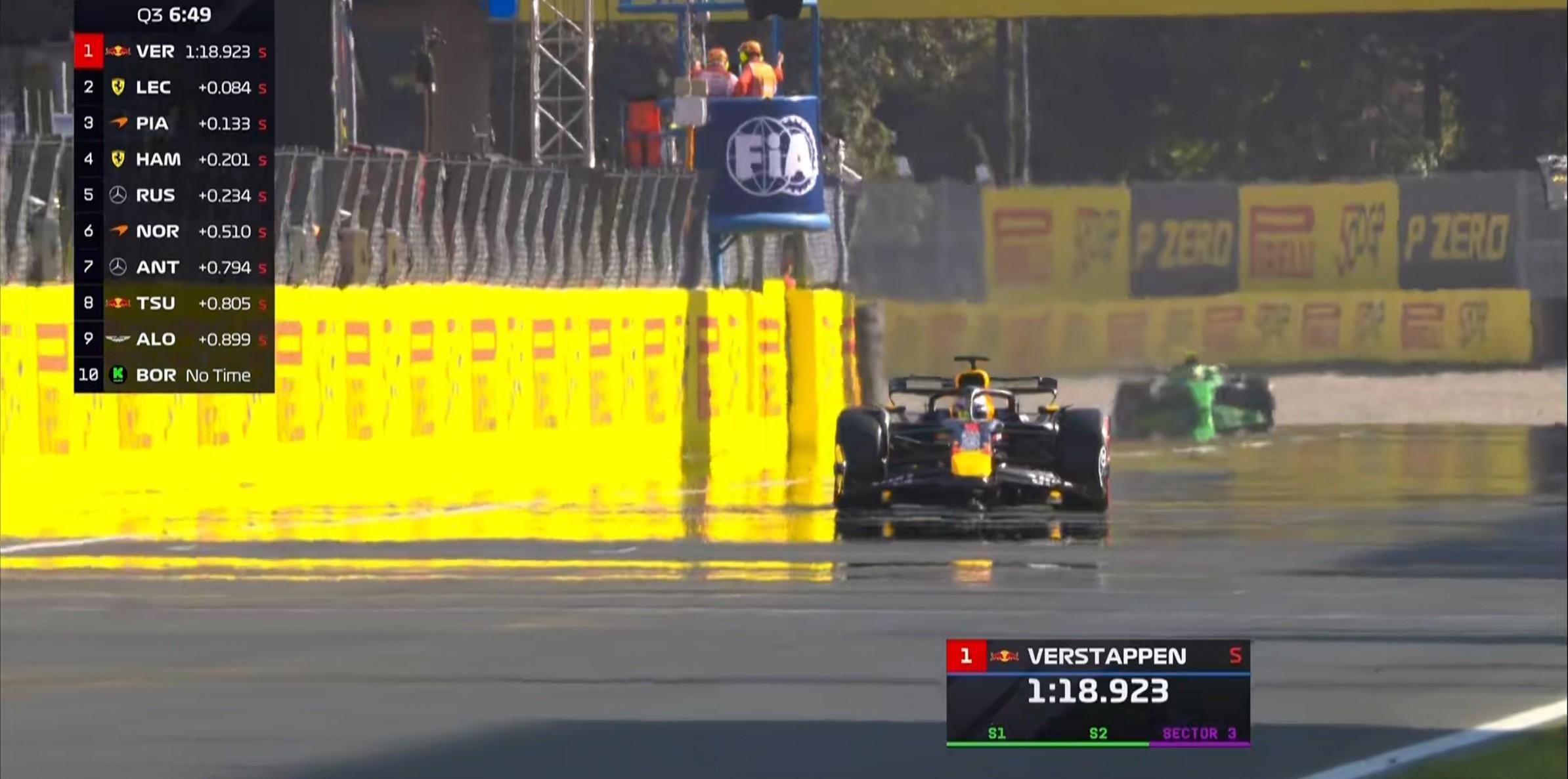Q2首轮飞驰圈结束,维斯塔潘暂居榜首,诺里斯无有效成绩;
